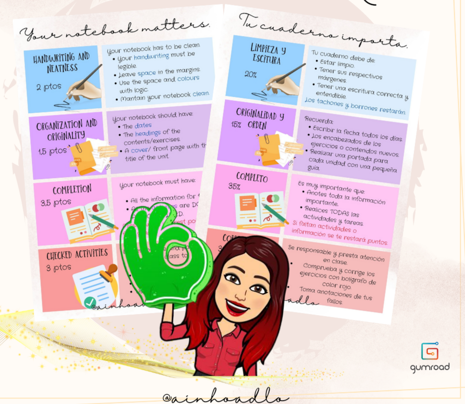 El trabajo diario, el hábito de trabajo y la escritura son aspectos muy importantes para mí y así es como se lo traslade a ellos. Por ese motivo en mi aula tienen a su disposición está rúbrica la cuál describe lo que debe contener su cuaderno para alcanzar la máxima puntuación.